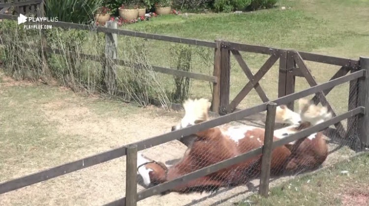 O cavalo Lyon é um dos destaques de A Fazenda . Nesta segunda-feira (28), o bichano rolou na terra e Diego Grossi achou graça: 'Que poerada danada!'