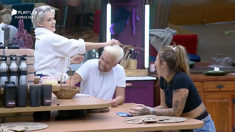Na noite desta quarta-feira (16), Andréa, Bifão e Viny conversavam na cozinha quando o peão perguntou de quem era o ovo quebrado em cima da mesa. ‘Vamos fazer igual a Narcisa?’, brincou. Andréa entrou na onda e quis brincar com o peão, foi quando o acidente aconteceu e ovo quebrou de verdade na cabeça de Viny. A socialite caiu na risada enquanto pedia desculpas. Assista ao momento!