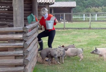 Andrea Nóbrega surtou ao lidar com os porcos. A peoa foi atacada pelos animais, que tentaram mordis...