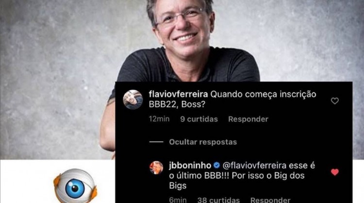 @jbboninho respondeu um seguidor que o bbb21 é o último bbb.