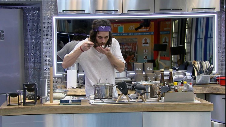 Enquanto os colegas de confinamento conversam no Quarto Cordel, Fiuk, que acabou de voltar de um Paredão, prepara o almoço para os brothers do grupo VIP no BBB21.