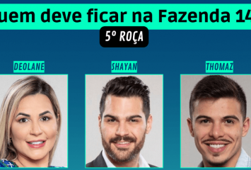 Ler MaisEnquete Votação 5ª Roça A Fazenda 14: Deolane x Shay x Thomáz, Quem Fica?